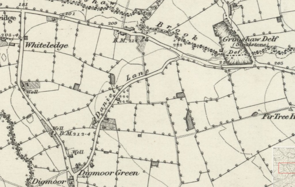 In the 1851 census John Barton is dwelling at Spencers Skelmersdale, however in the census images there are a lot of entries with a blank location, which is assumed to indicate a duplicate of the previous entry which goes back many sheets to an entry that says “Spencer’s” so this is probably a road. Modern day Spencers Lane is south of Grimshaw but the name does not appear on the 1848 map, but modern day Spencers Lane does join with Daniel’s Lane which is on the 1848 map.