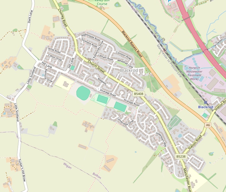 Blackrod is a small town between Wigan and Bolton, originally tied adminstratively to Wigan but now in the Metropolitan Borough Of Bolton. Its roots go back to Medieval times with possible Roman links. It became industrialised during the Industrial Revolution with mining and railways as key employers, there was also a Printworks and a Bleachworks nearby.