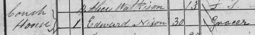In the census of 1841 Edward And Jane Nixon are living at “Coush House Winstanley” where Edward has occupation Grocer.