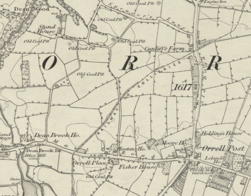Looking at the 1848 map Stand House is present as is Dean Brook Bridge so perhaps the location of “Orrell House Farm” is more likely to be “Orrell Place” since that is between Orrell Post and Dean Brook Bridge/Stand House.