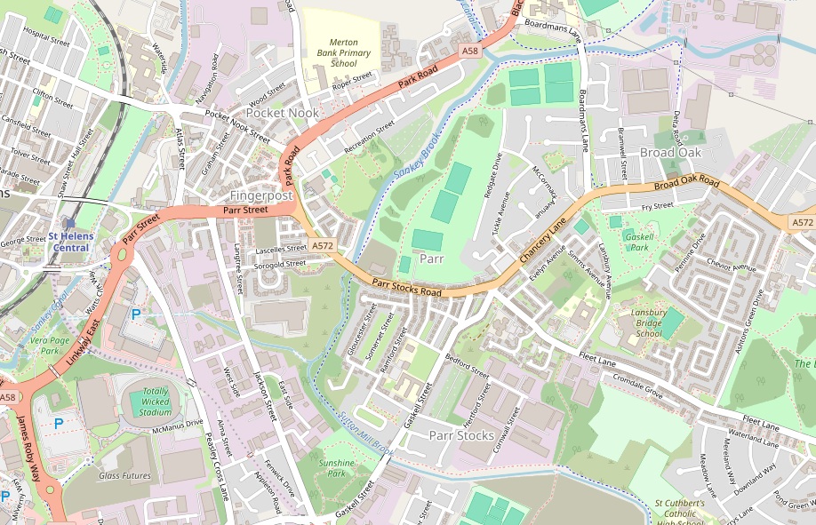 Parr is a neighbourhood to the east of Central St Helens. It once was a separate township. It contains the church of St Peter.